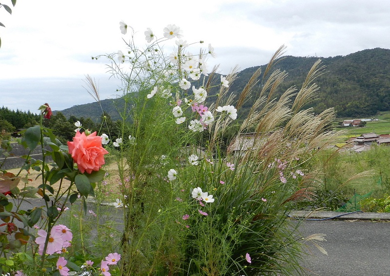 バラとススキとコスモスと