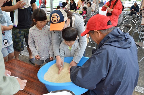 コメのすくい取り 両手いっぱいに3回行いました